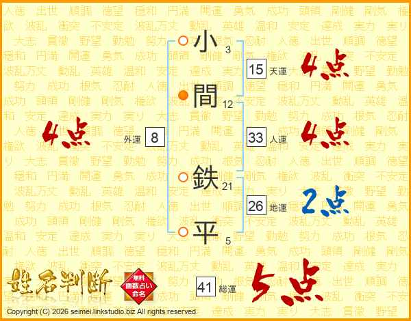 小間鉄平さんの総運は41画の5点!