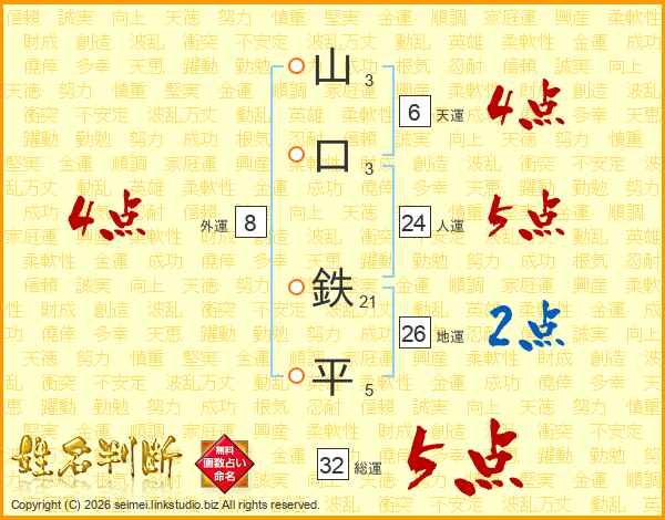 山口鉄平さんの地運は26画の2点!