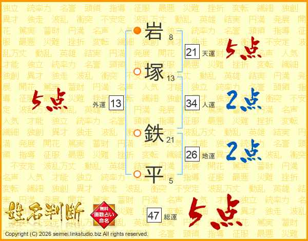 岩塚鉄平さんの総運は47画の5点!