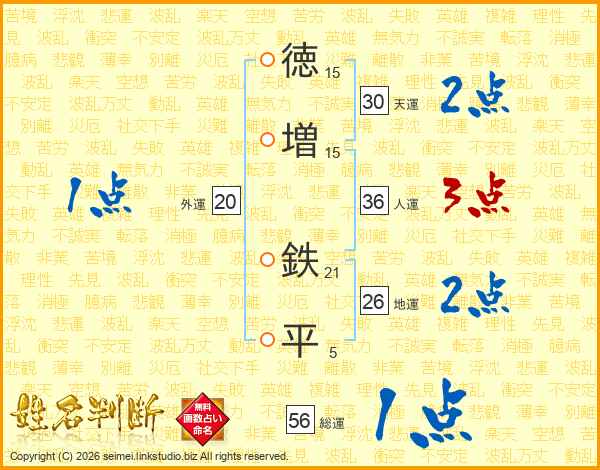 徳増鉄平さんの地運は26画の2点!