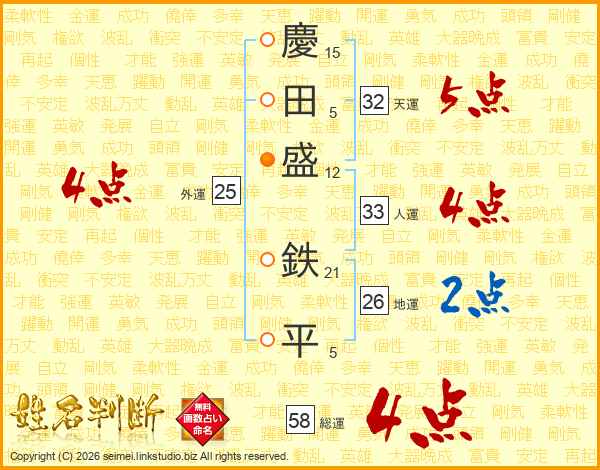 慶田盛鉄平さんの総運は58画の4点!
