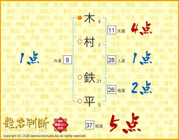 木村鉄平さんの総運は37画の5点!