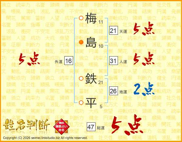 梅島鉄平さんの総運は47画の5点!