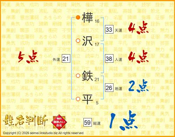 樺沢鉄平さんの外運は21画の5点!