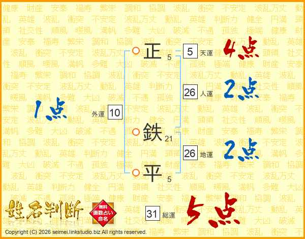 正鉄平さんの総運は31画の5点!