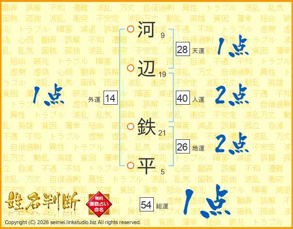 河(9画)辺(19画) 鉄(21画)平(5画)