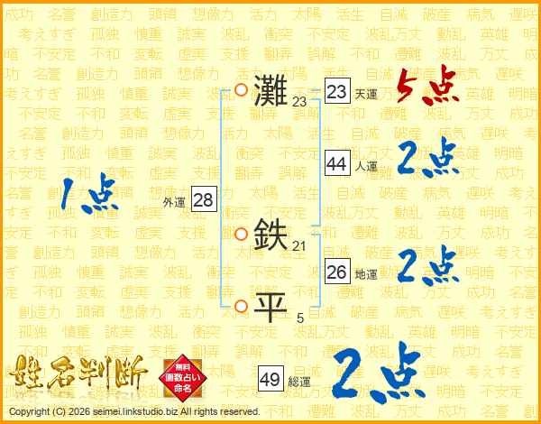 灘鉄平さんの地運は26画の2点!