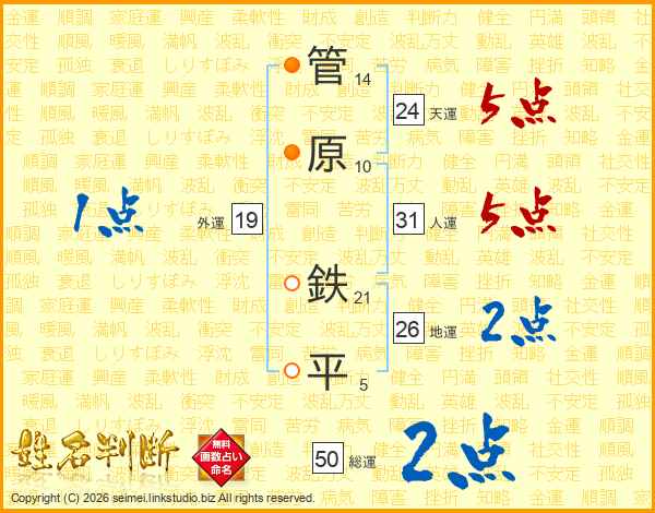 管原鉄平さんの人運は31画の5点!