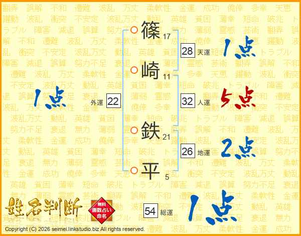 篠崎鉄平さんの総運は54画の1点!