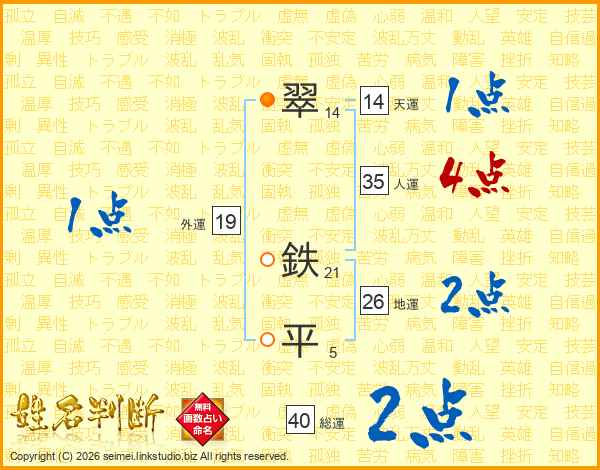 翠鉄平さんの総運は40画の2点!