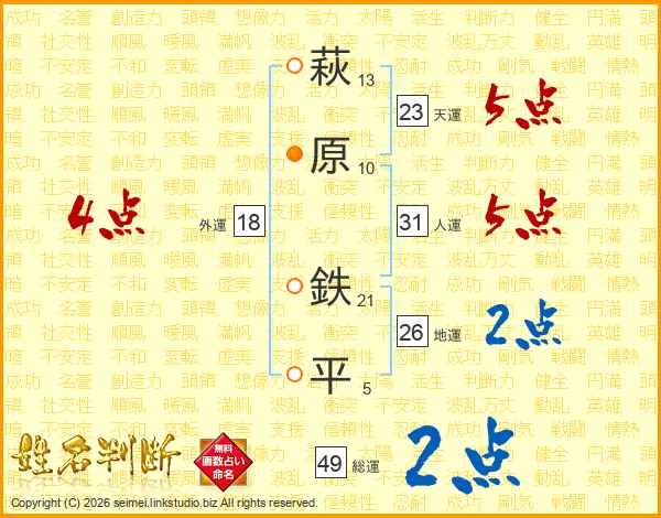 萩原鉄平さんの地運は26画の2点!