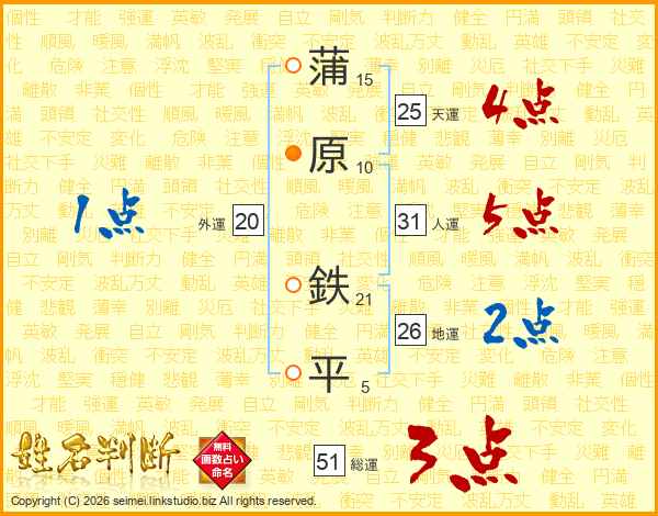 蒲原鉄平さんの人運は31画の5点!