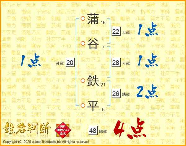 蒲谷鉄平さんの地運は26画の2点!