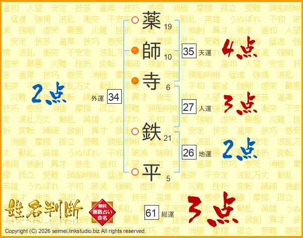 薬師寺鉄平さんの総運は61画の3点!