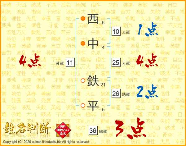 西中鉄平さんの地運は26画の2点!