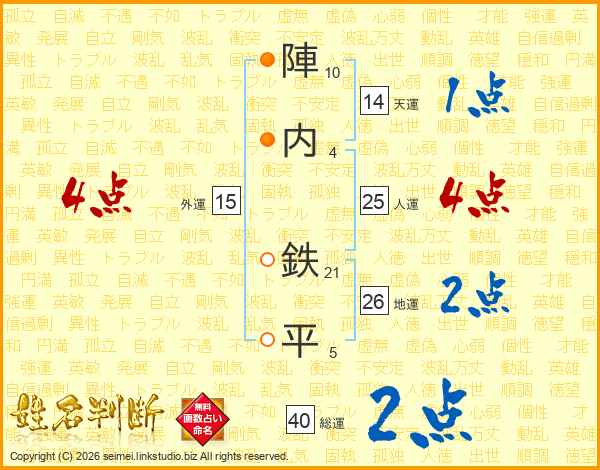 陣内鉄平さんの地運は26画の2点!