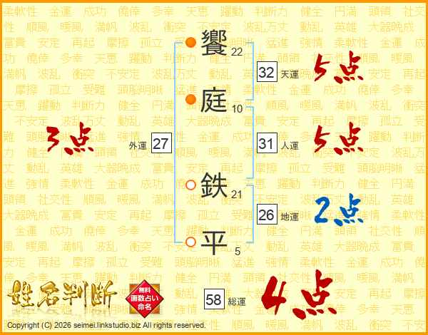 饗庭鉄平さんの総運は58画の4点!