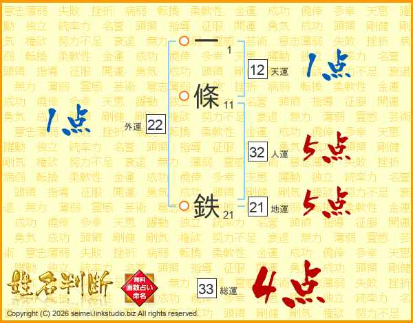 一條鉄さんの総運は33画の4点!