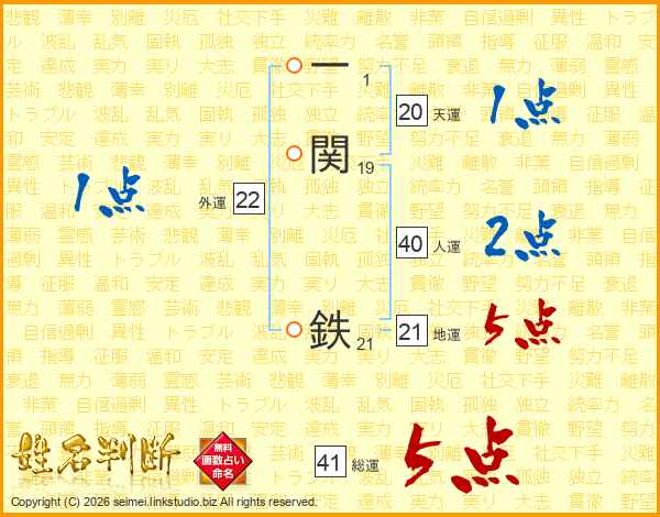 一関鉄さんの総運は41画の5点!