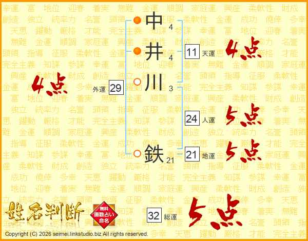 中井川鉄さんの総運は32画の5点!