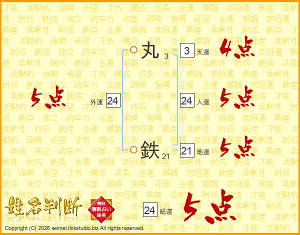 丸鉄さんの人運は24画の5点!
