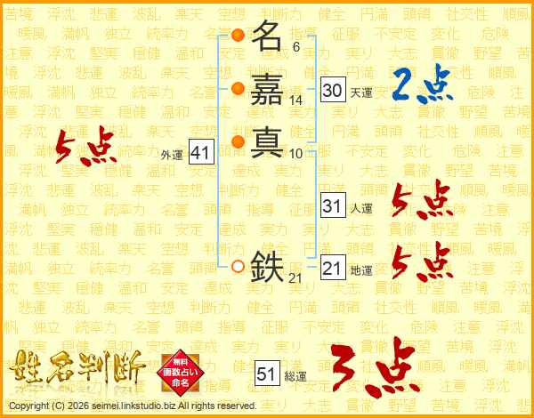名嘉真鉄さんの総運は51画の3点!