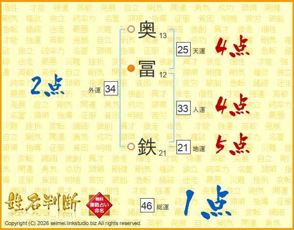 奥冨鉄さんの天運は25画の4点!