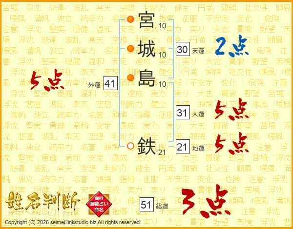 宮(10画)城(10画)島(10画) 鉄(21画)