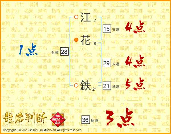 江花鉄さんの総運は36画の3点!