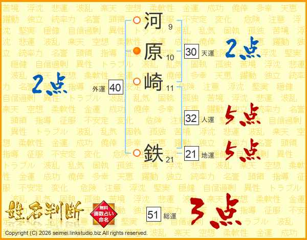 河(9画)原(10画)崎(11画) 鉄(21画)