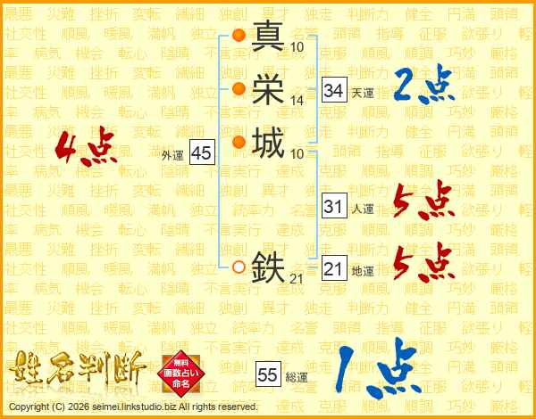 真(10画)栄(14画)城(10画) 鉄(21画)