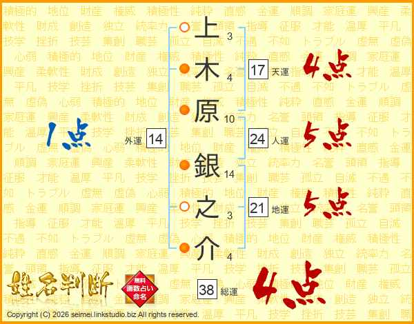 上木原銀之介さんの総運は38画の4点!