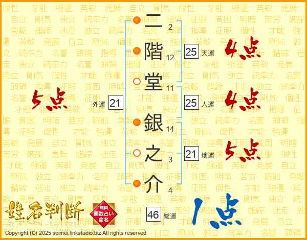 二(2画)階(12画)堂(11画) 銀(14画)之(3画)介(4画)