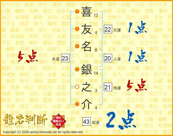 喜友名銀之介さんの総運は43画の2点!
