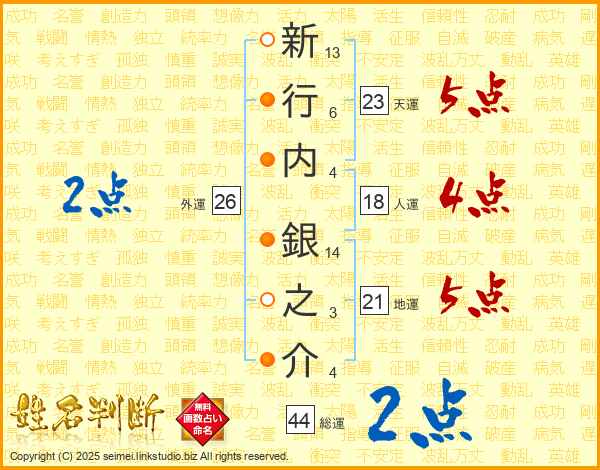 新(13画)行(6画)内(4画) 銀(14画)之(3画)介(4画)