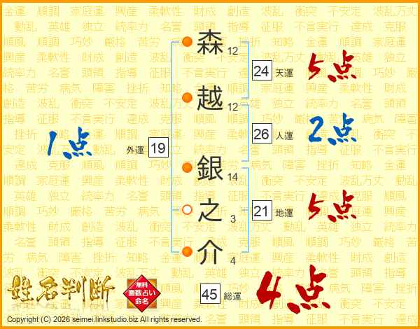 森越銀之介さんの総運は45画の4点!