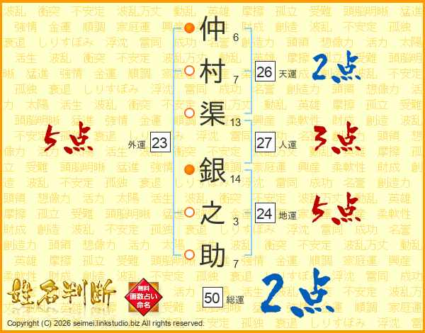 仲村渠銀之助さんの天運は26画の2点!