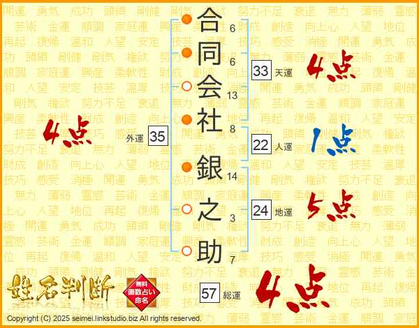 合同会社銀之助さんの天運は33画の4点!
