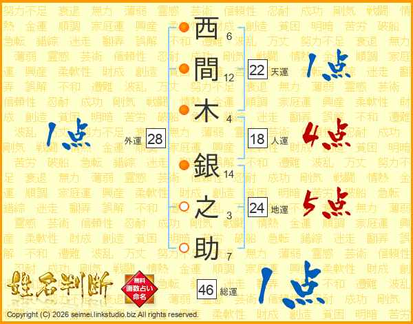 西間木銀之助さんの総運は46画の1点!