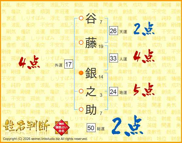 谷藤銀之助さんの人運は33画の4点!