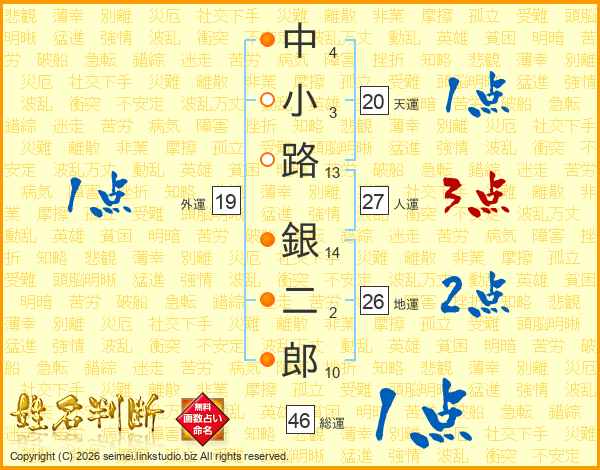 中小路銀二郎さんの総運は46画の1点!