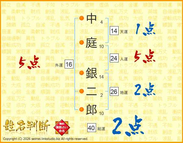 中庭銀二郎さんの総運は40画の2点!
