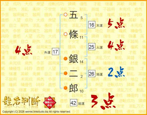 五條銀二郎さんの総運は42画の3点!