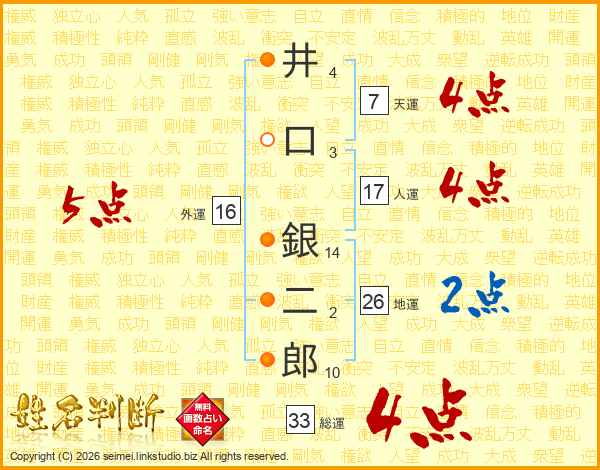 井口銀二郎さんの総運は33画の4点!