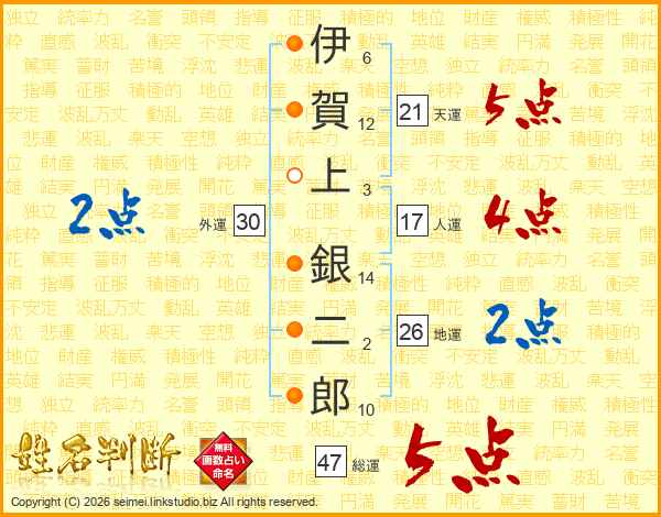 伊賀上銀二郎さんの総運は47画の5点!