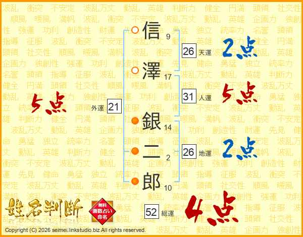 信澤銀二郎さんの総運は52画の4点!
