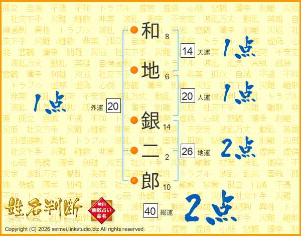 和(8画)地(6画) 銀(14画)二(2画)郎(10画)