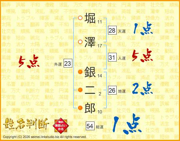 堀澤銀二郎さんの総運は54画の1点!