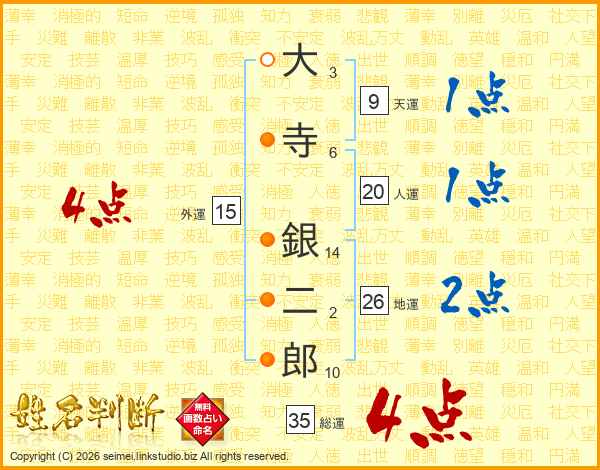 大寺銀二郎さんの総運は35画の4点!