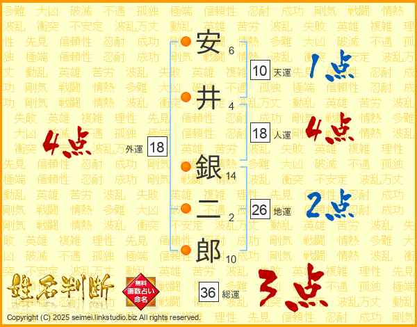 安(6画)井(4画) 銀(14画)二(2画)郎(10画)
